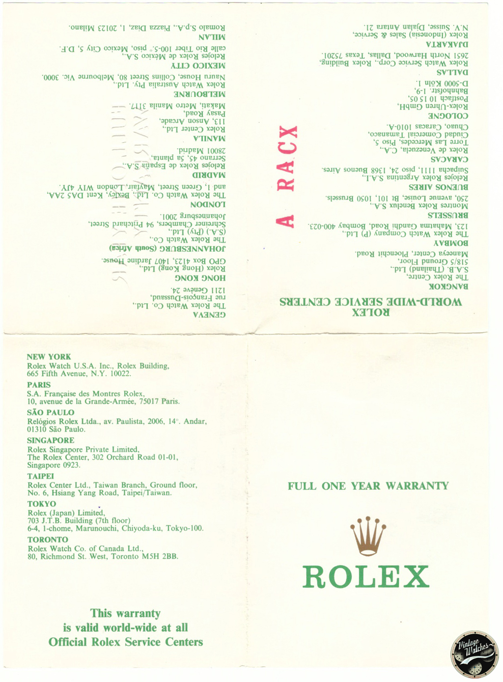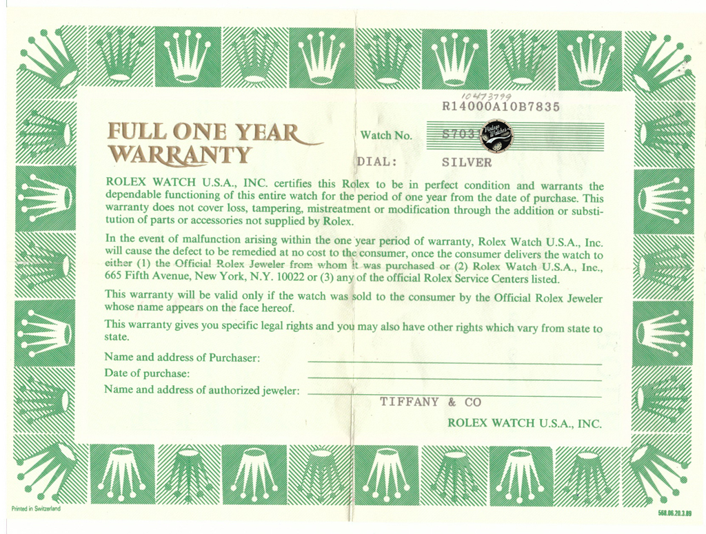 original Rolex Tiffany papers, box.