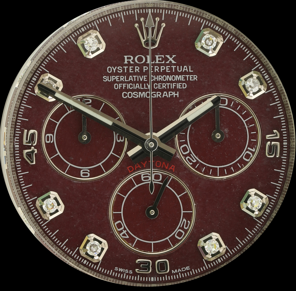 The Daytona “Grossular” also featured brilliant-cut diamond hour markers with white gold edges.