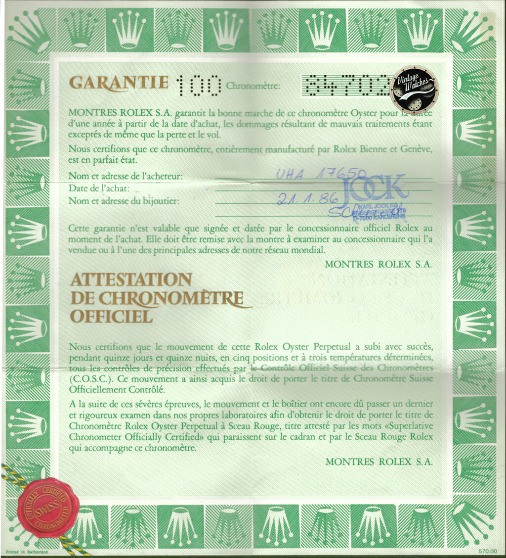 • Complete with box and Rolex warranty