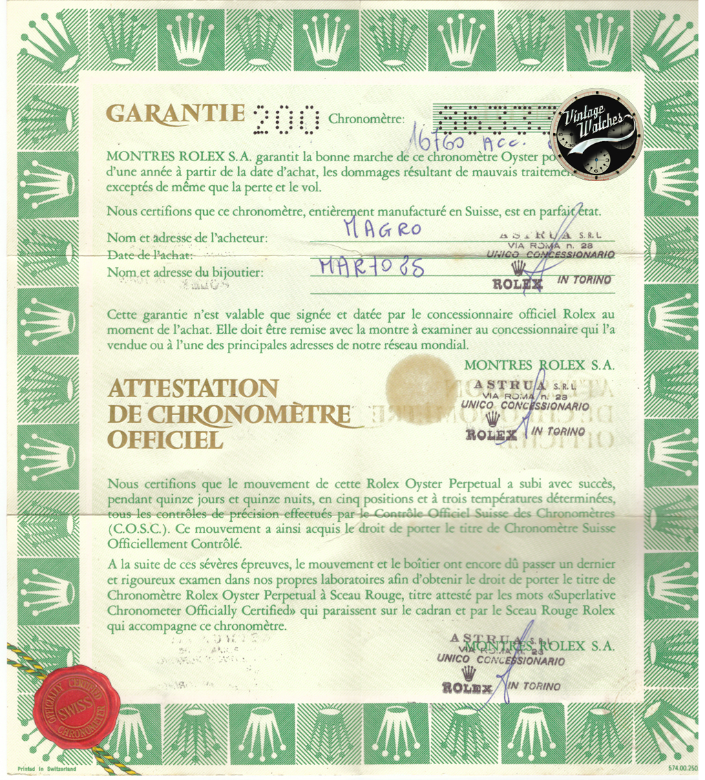 The model for sale mounts the rarest version i.e. the “No Date” MK1 which stands for the lack of the Date after Perpetual Inscription, characteristic of models produced only in 1984.