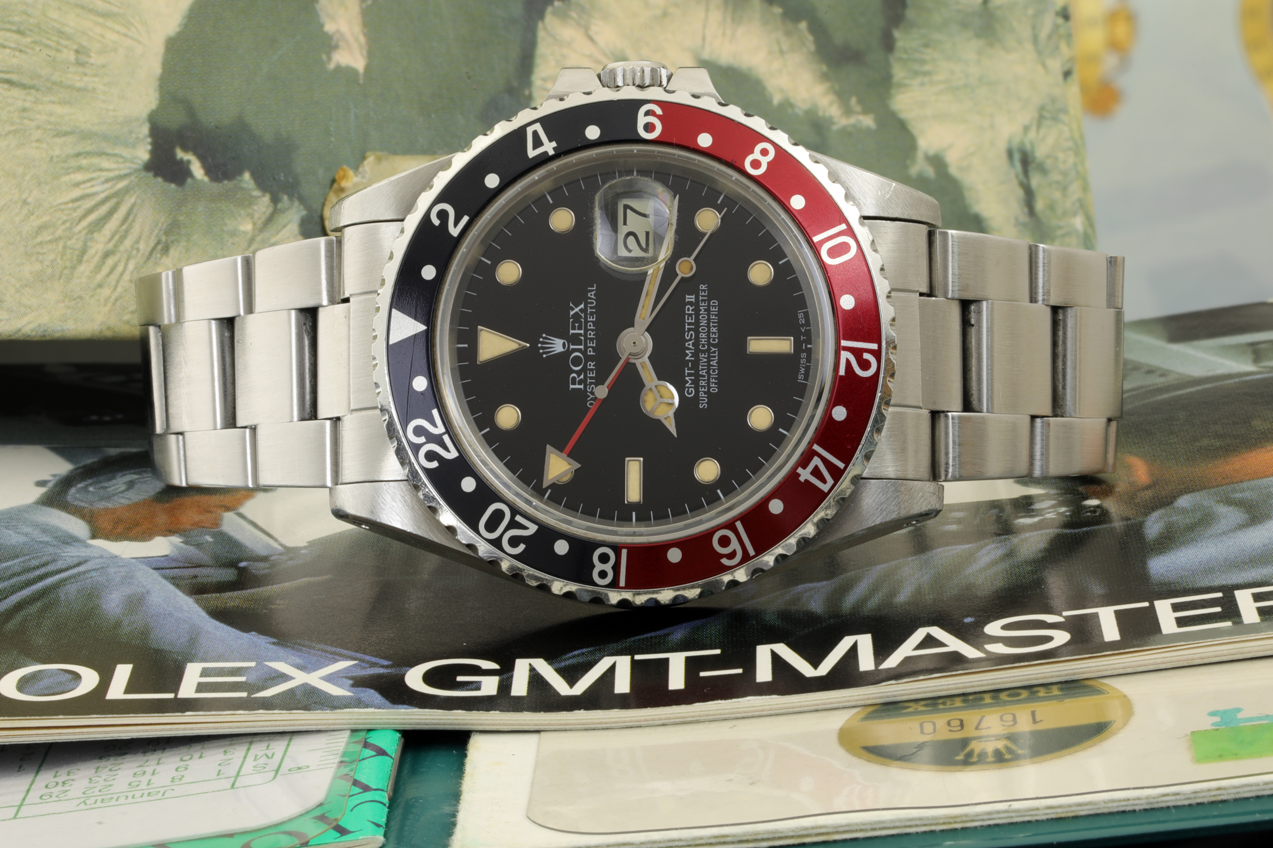 The Gmt Fat Lady ref. 16760 is so nicknamed because of its taller case and thicker winding crown protection lugs than later references.