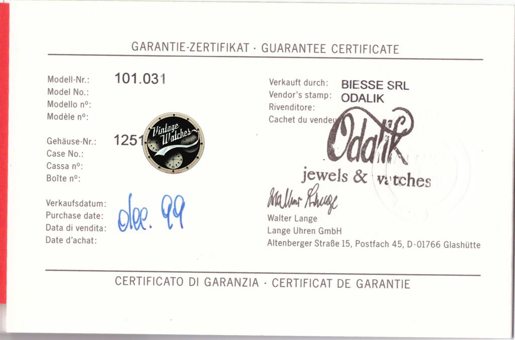 A. Lange & Söhne LANGE 1 ref. 101031 in Oro Rosa con Scatola e Garanzia