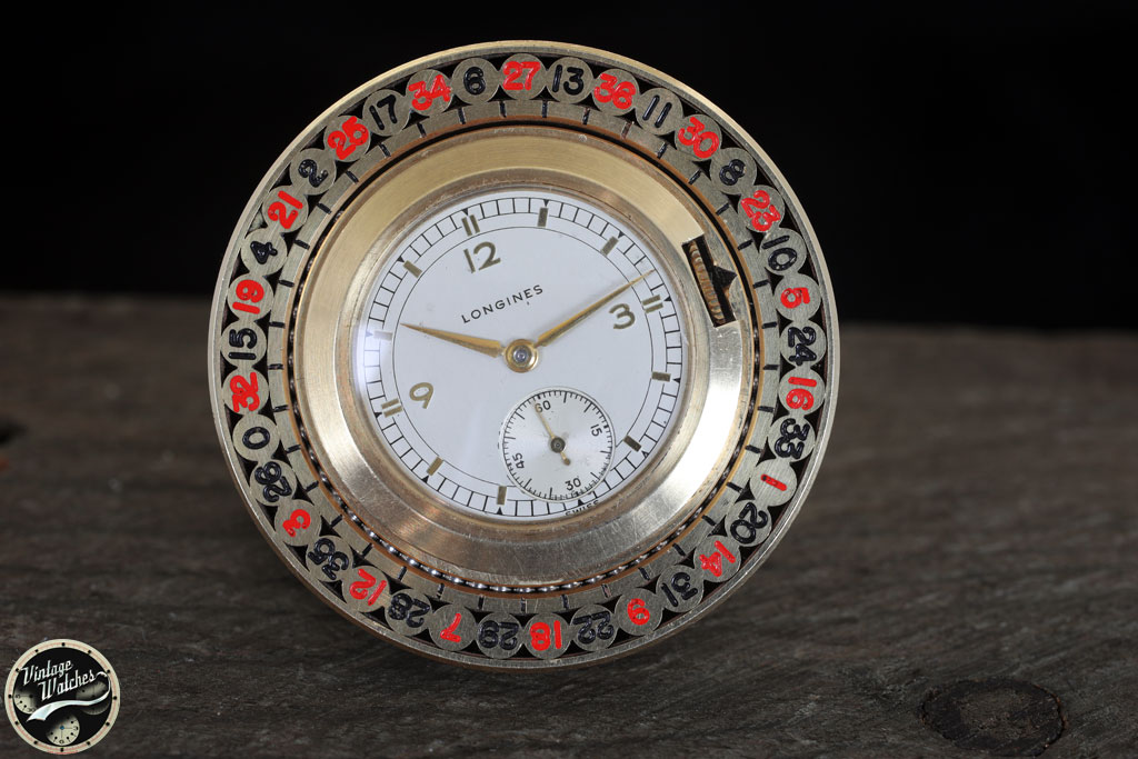 LONGINES DA TASCA IN ORO CARICA MANUALE CON RUOTA ROULETTE GIREVOLE PRODOTTO NEL 1945