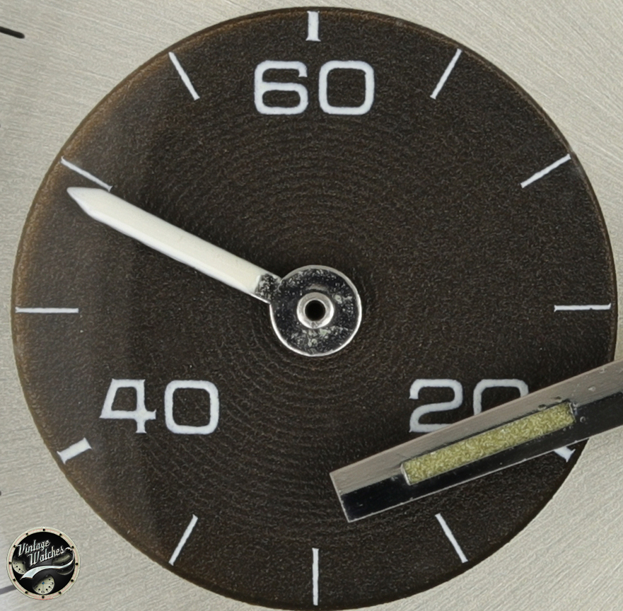 L’orologio monta un bellissimo e perfetto quadrante con registri leggermente marroni.