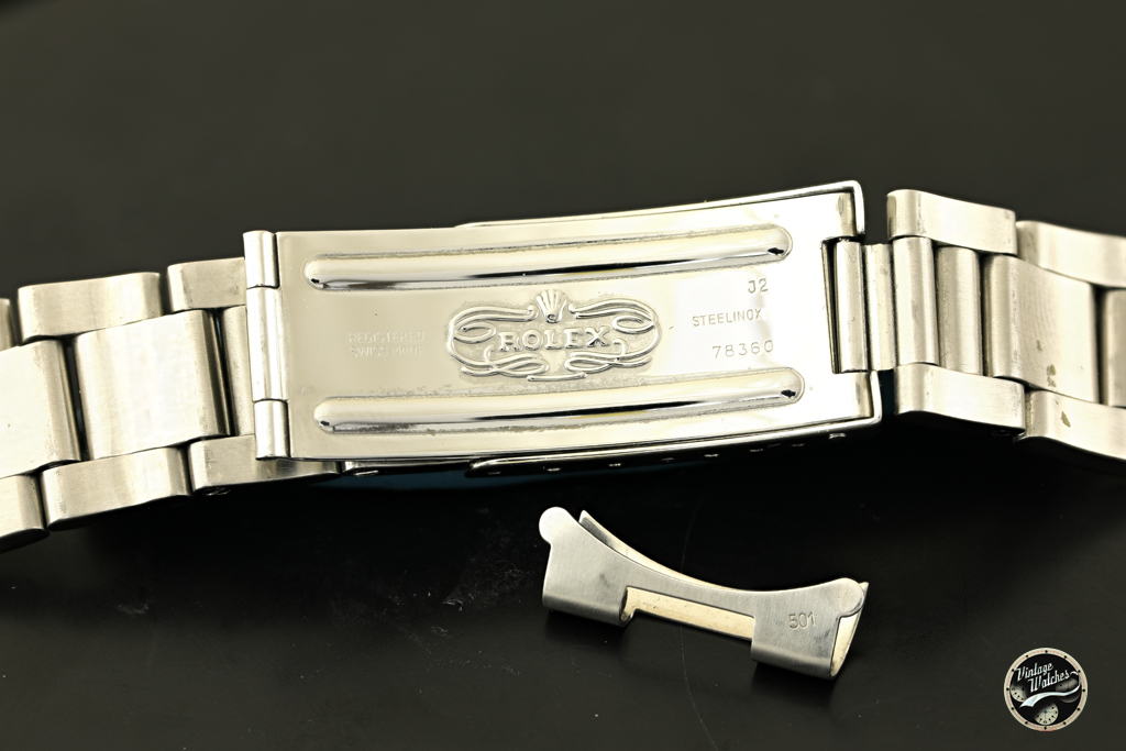 Il modello in vendita è ancora più particolare perchè monta il raro quadrante Rail : la scritta ad ore 6 ‘Superlative Chronometer Offiacially Certifid’ appare divisa da una sorta di binario, una linea immaginaria che taglia la scritta a metà.