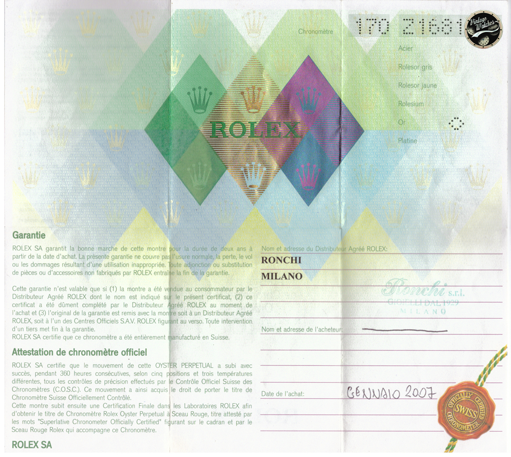 originale Rolex in oro giallo 18kt