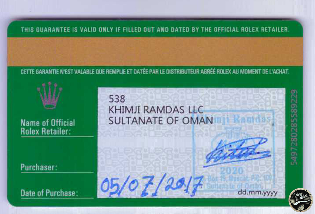 full set : Scatola Rolex con logo Oman, garanzia Rolex Sultanato dell’Oman, libretti, tag.