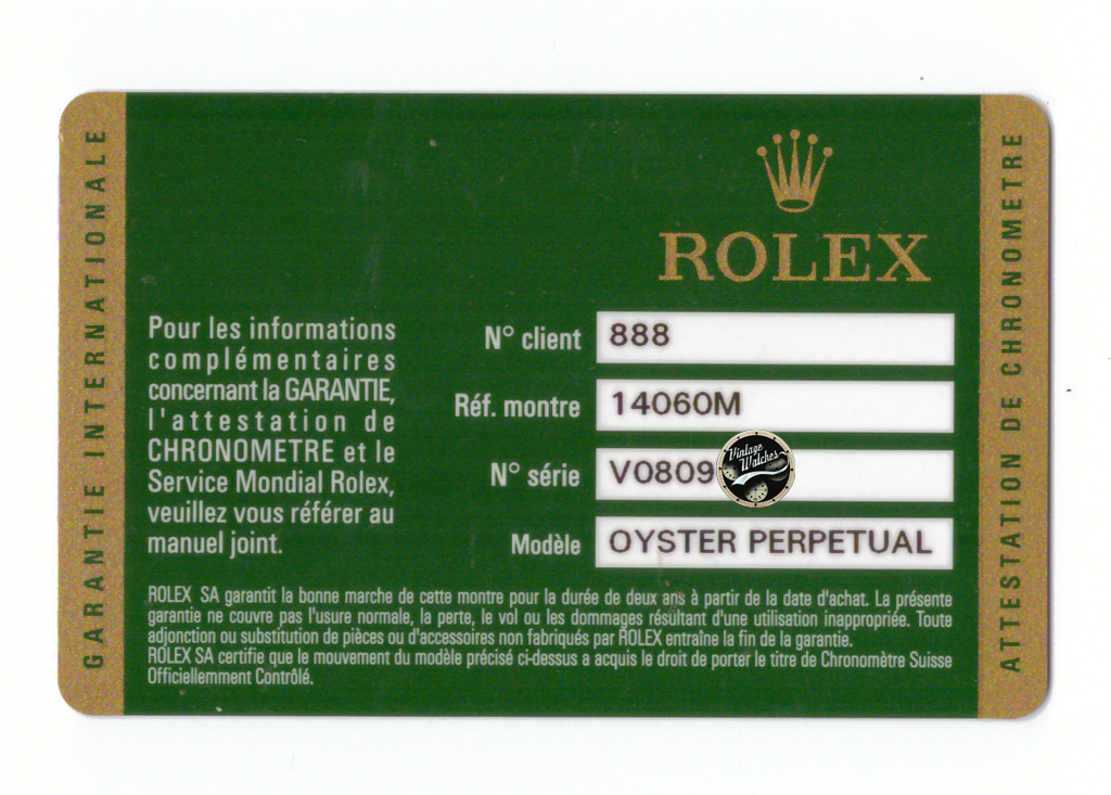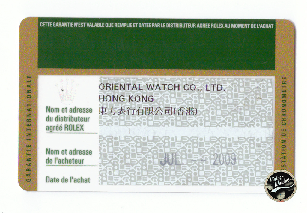 Accessori: garanzia card Rolex, Scatola, tag verde.