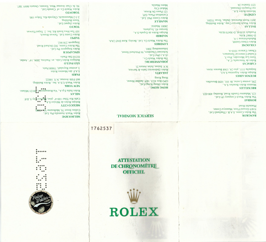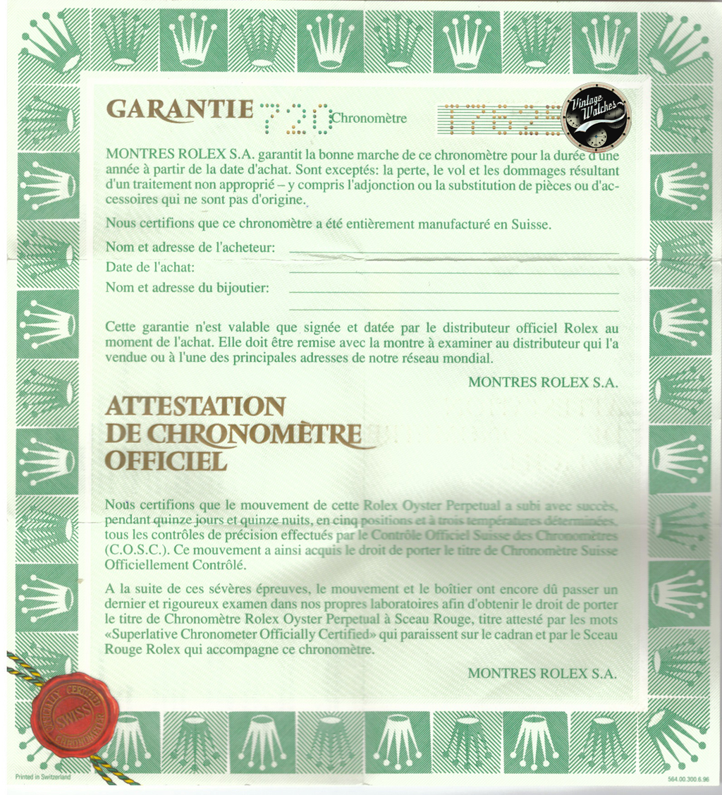 • scatola con bollino, garanzia traforata, bollino verde sul fondello