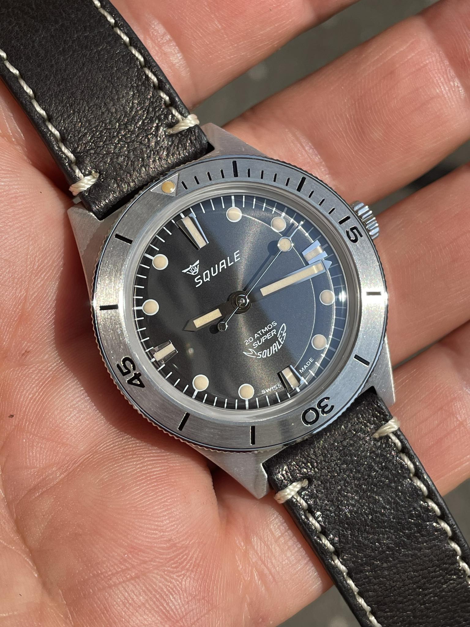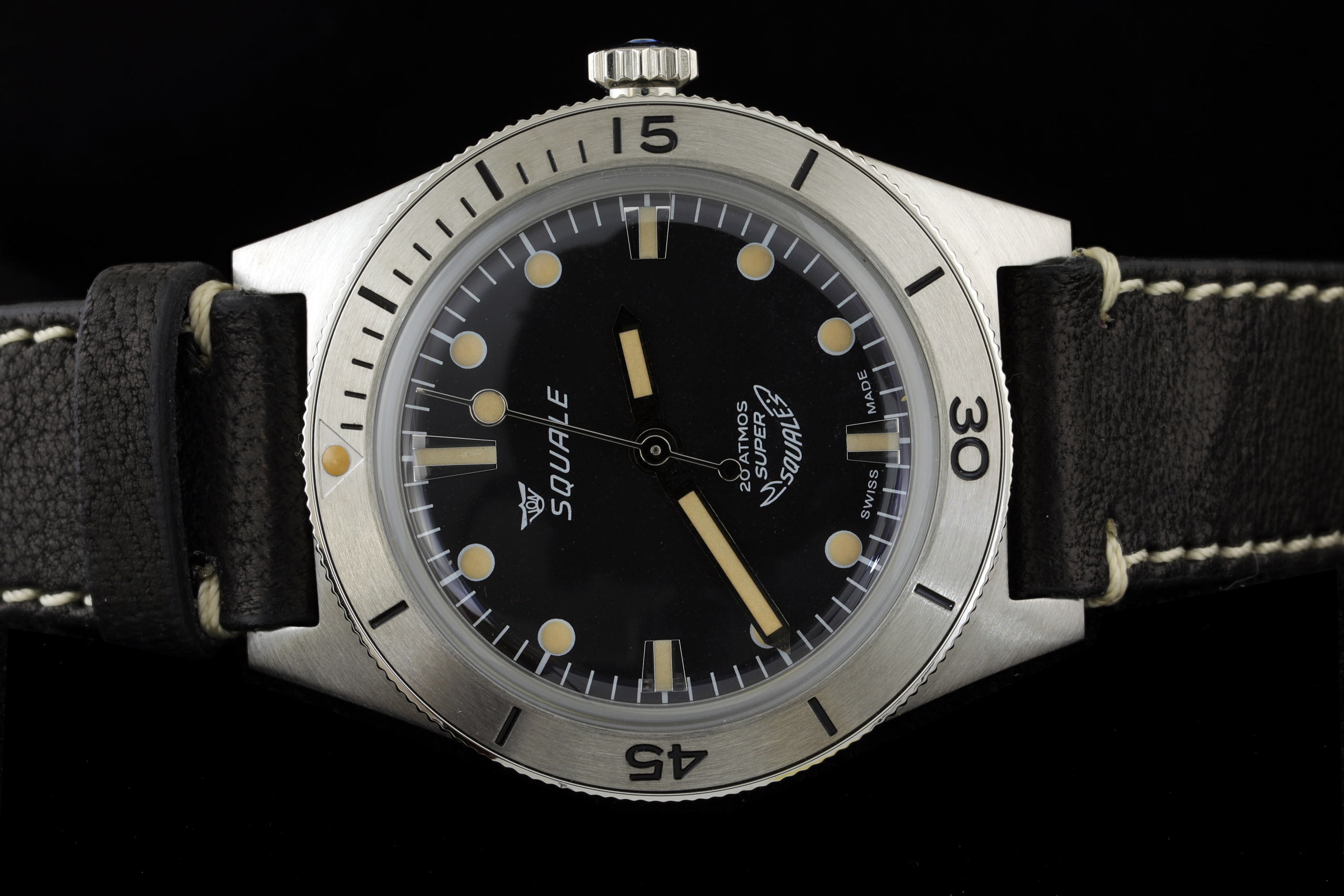 Super Squale Sunray Black con Cinturino in pelle Nero