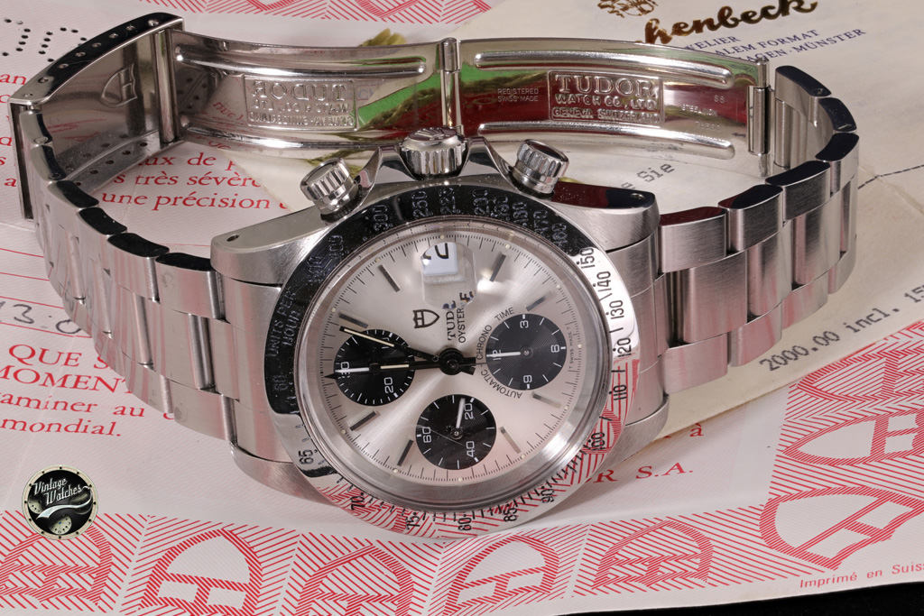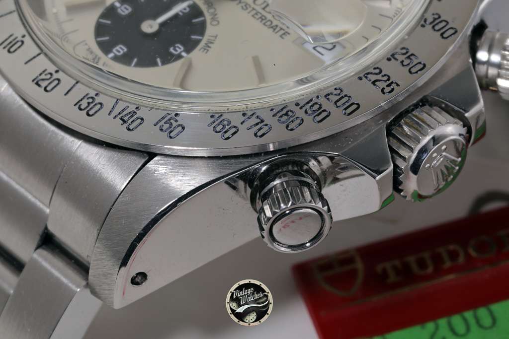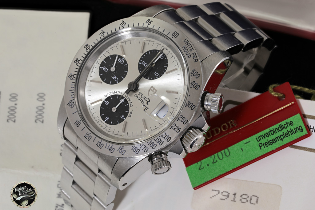 Questo Tudor Big Block Chronograph ref 79180 è in eccezionali condizioni, numero di serie B6xxxxx, che data questo orologio all’anno di produzione 1995, che è stato l’ultimo anno di produzione per questa referenza. Le condizioni vicino al nuovo ed il corredo rendono quest’orologio una chicca da collezionare, non lo confondete con altri, la qualità qui c’è tutta.