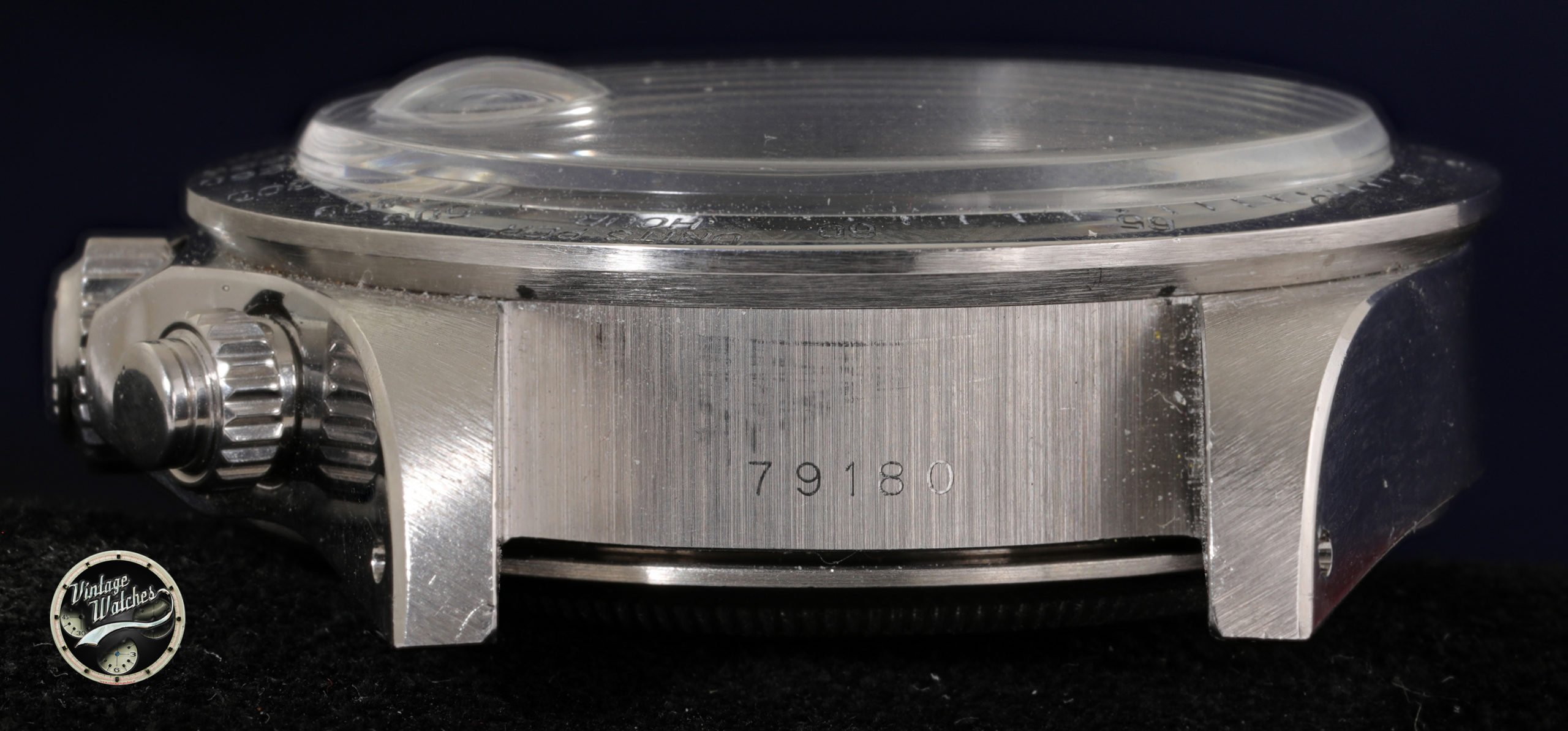 Il Tudor Big Block Chronograph Ref 79180 presenta una cassa in acciaio da 40 mm con un vetro in esalite (plexy). Alimentato da un movimento automatico Valjoux 7750, il 79180 presenta un quadrante con tre contatori secondari alle ore 6, 9 e 12, nonché una finestrella della data alle ore 3. La lunetta fissa è in acciaio, incisa con una scala tachimetrica.